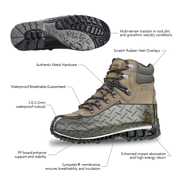 Ішкі аяқ киім неміс Sympatex су өткізбейтін шұлықтармен жабылған, олар дем алатын және су өткізбейтін, аяқтарыңызды әрқашан құрғақ ұстайды.