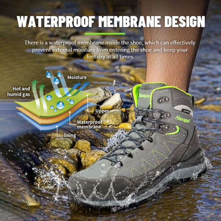 Тыныс алатын қиыршық тасты былғары треккинг аяқ киімі - бұл таулар мен жабайы табиғатқа арналған, су өткізбейтін және тайғақ емес, үстіңгі былғары материалы тозуға төзімді және сызаттарға төзімді, резеңке табаны күшті ұстағыш, әртүрлі сценарийлерге бейімделген, ашық спорт әуесқойлары үшін өте қолайлы.