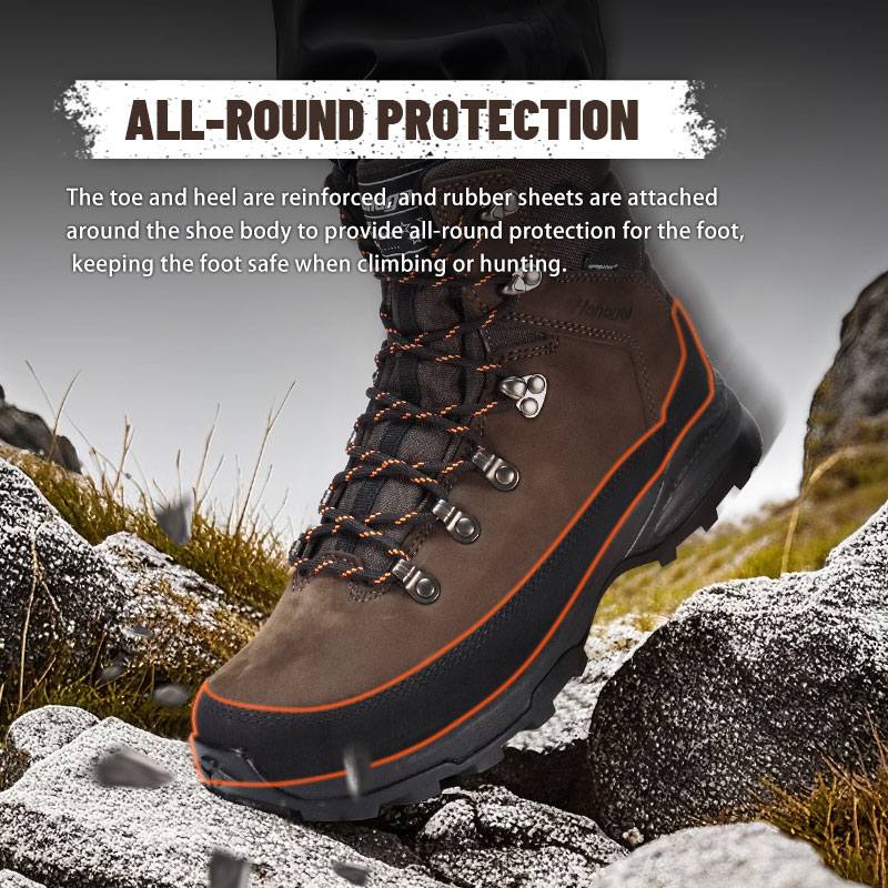 Аяқтың саусағы мен өкшесі нығайтылған және аяқтың жан-жақты қорғанысын қамтамасыз ету үшін аяқ киімнің денесінің айналасына резеңке парақтар бекітілген, өрмелеу немесе аң аулау кезінде аяқты қауіпсіз ұстау.